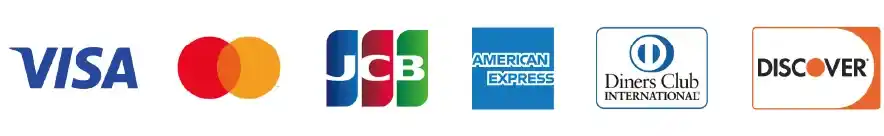 Visa, Mastercard, American Express, JCB, Diners Club, and Discover